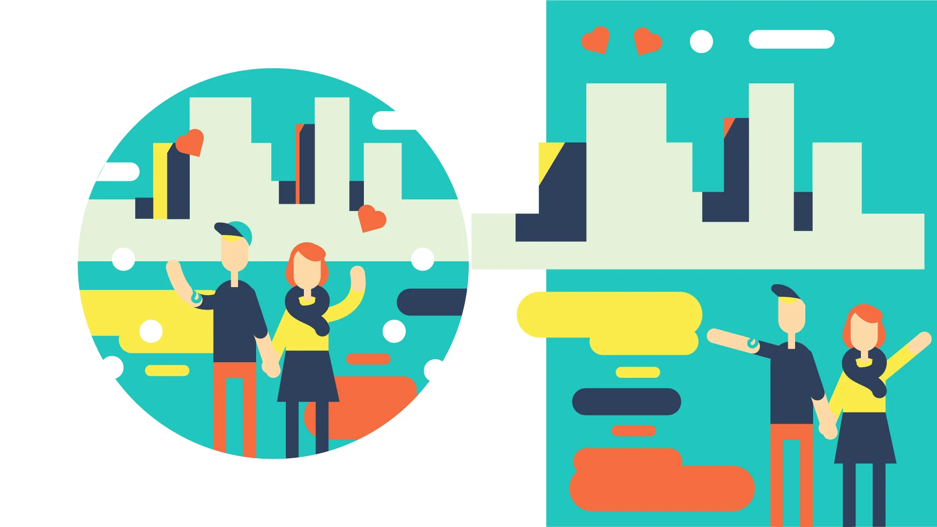 The following are a series of short, looping animations celebrating several personal life milestones (leaving my job to start freelancing, getting my first tattoo, moving across the country, etc.). I started with sketches and storyboarding that eventually led to the development of an overall color palette and illustration style. I then built out the individual assets for each animation and used Adobe After Effects to bring everything to life. I wanted each animation to involve a relatively simple, but unique type of motion, so that each animation would feel special without looking out of place.